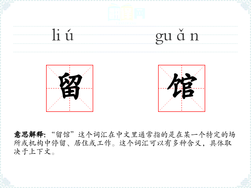 “留馆”这个词汇在中文里通常指的是在某一个特定的场所或机构中停留、居住或工作。这个词汇可以有多种含义,具体取决于上下文。