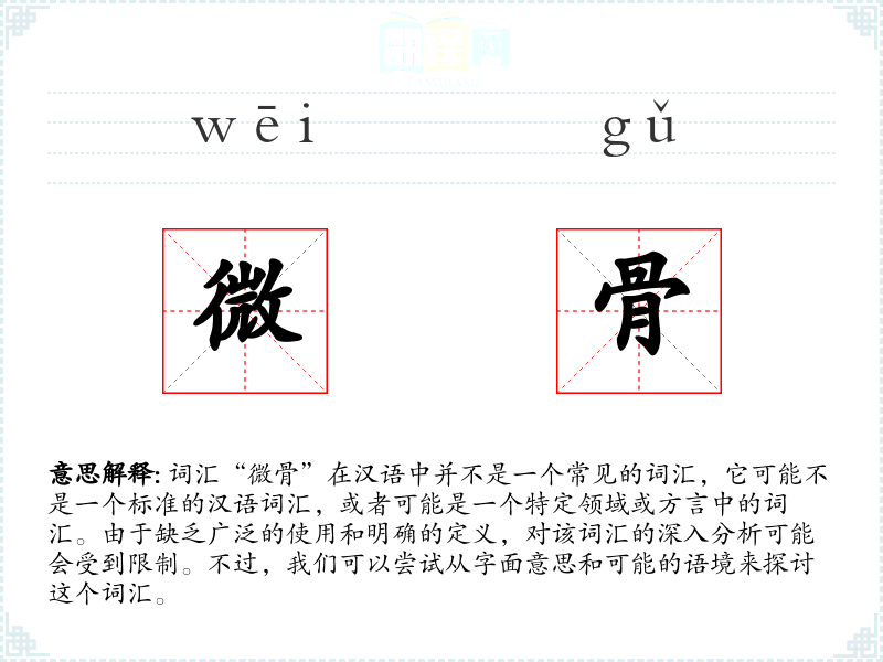 由于“微骨”不是一个常见的词汇,它在不同语境下的使用可能非常有限。如果它出现在某个特定的文学作品或专业领域中,可能需要具体的上下文来解释其含义。