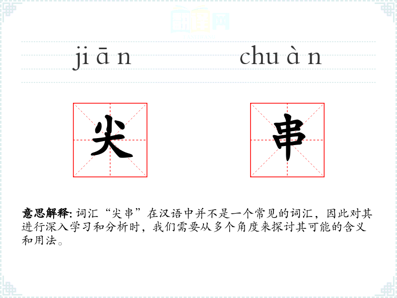 词汇“尖串”在汉语中并不是一个常见的词汇,因此对其进行深入学习和分析时,我们需要从多个角度来探讨其可能的含义和用法。