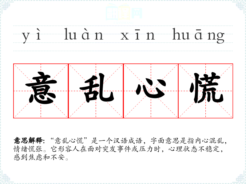 - 口语语境:在日常对话中,人们可能会用“意乱心慌”来形容自己在考试、面试或重大决策前的紧张情绪。