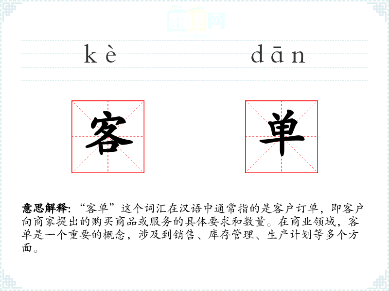 “客单”这个词汇的词源较为直接,由“客”(客户)和“单”(单据、清单)组合而成。在商业活动中,这个词汇一直保持着其基本含义,没有发生显著的演变。