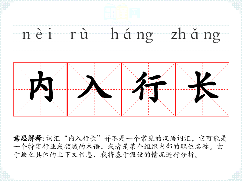 词汇“内入行长”并不是一个常见的汉语词汇,它可能是一个特定行业或领域的术语,或者是某个组织内部的职位名称。由于缺乏具体的上下文信息,我将基于假设的情况进行分析。