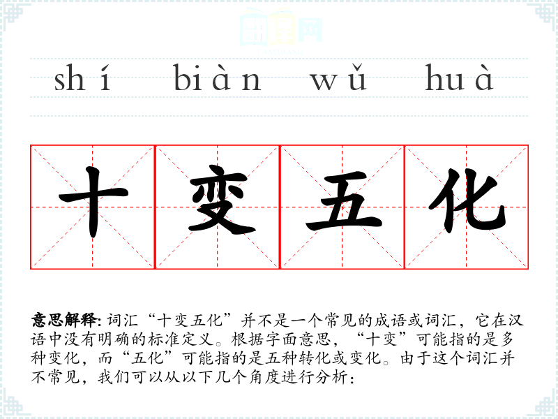 由于“十变五化”不是一个标准词汇,我们无法给出一个确切的定义。但从字面意思来看,它可能指的是非常复杂或多样化的变化。