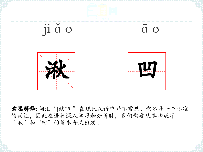 词汇“[湫凹]”在现代汉语中并不常见,它不是一个标准的词汇,因此在进行深入学*和分析时,我们需要从其构成字“湫”和“凹”的基本含义出发。