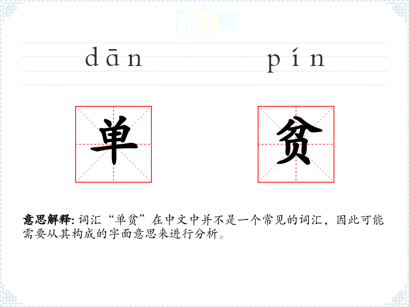 词汇“单贫”在中文中并不是一个常见的词汇,因此可能需要从其构成的字面意思来进行分析。