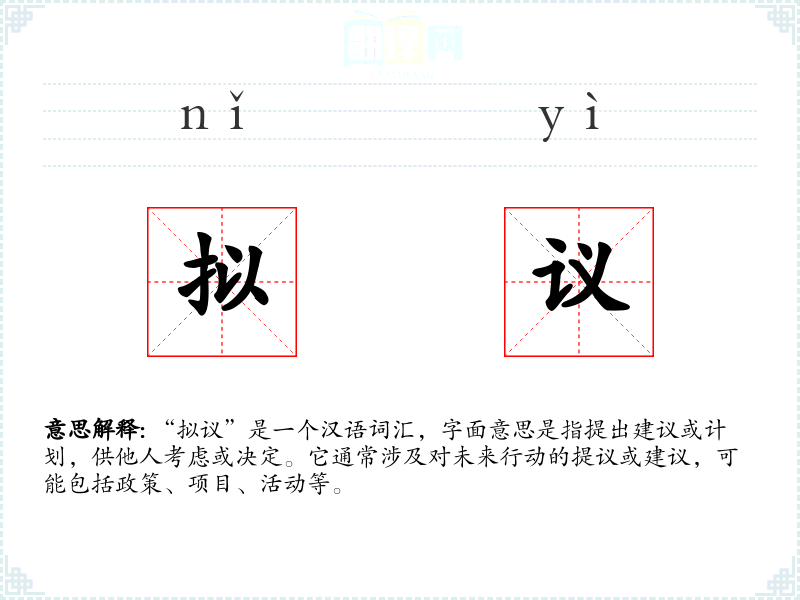 “拟议”一词源于汉语,由“拟”和“议”两个字组成。“拟”有模拟、设想的意思,“议”则指讨论、商议。随着时间的推移,“拟议”逐渐被用于更广泛的语境中,成为正式提出建议的常用词汇。
