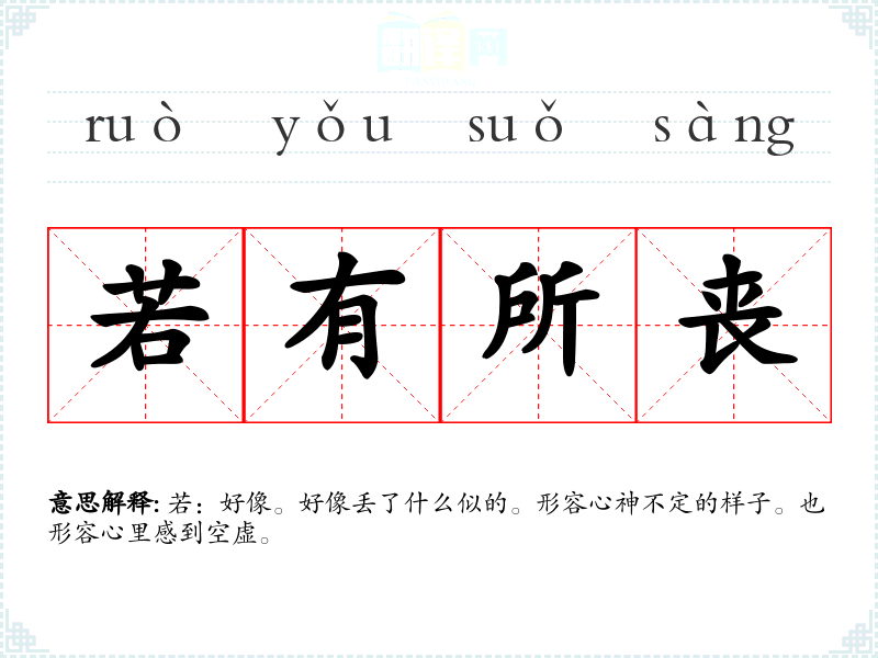 若:好像。好像丢了什么似的。形容心神不定的样子。也形容心里感到空虚。