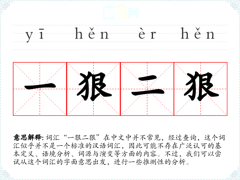 词汇“一狠二狠”在中文中并不常见,经过查询,这个词汇似乎并不是一个标准的汉语词汇,因此可能不存在广泛认可的基本定义、语境分析、词源与演变等方面的内容。不过,我们可以尝试从这个词汇的字面意思出发,进行一些推测性的分析。