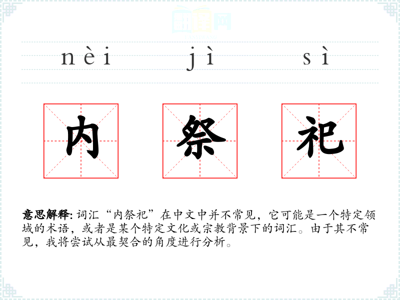 词汇“内祭祀”在中文中并不常见,它可能是一个特定领域的术语,或者是某个特定文化或**背景下的词汇。由于其不常见,我将尝试从最契合的角度进行分析。