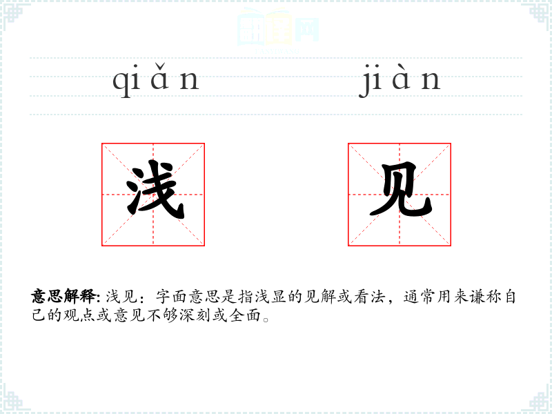 浅见:字面意思是指浅显的见解或看法,通常用来谦称自己的观点或意见不够深刻或全面。