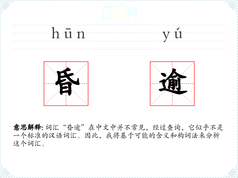 词汇“昏逾”在中文中并不常见,经过查询,它似乎不是一个标准的汉语词汇。因此,我将基于可能的含义和构词法来分析这个词汇。