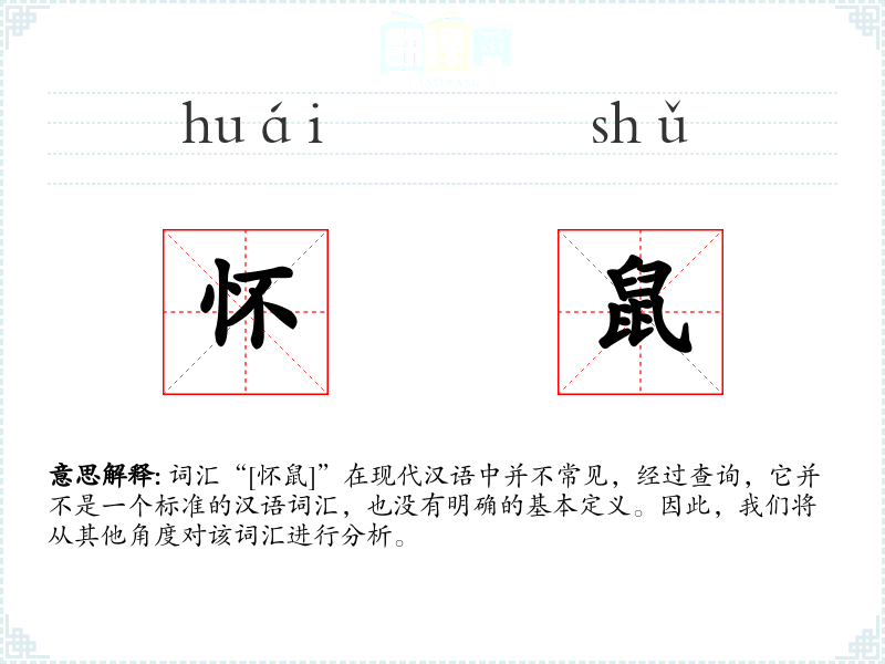 由于“[怀鼠]”不是一个标准的汉语词汇,我们无法提供其字面意思和基本含义。