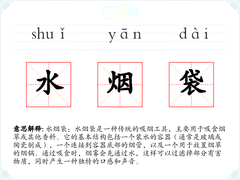 "水烟袋"的意思解释、水烟袋是什么意思由翻译网汉语词典查词提供。