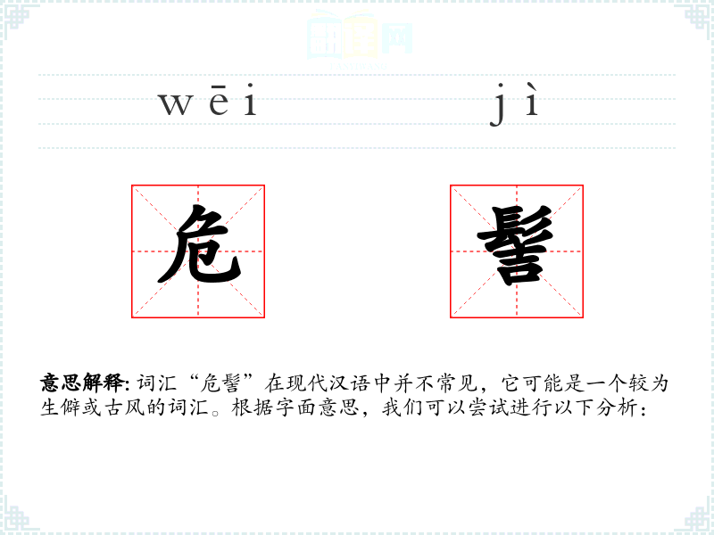 词汇“危髻”在现代汉语中并不常见,它可能是一个较为生僻或古风的词汇。根据字面意思,我们可以尝试进行以下分析: