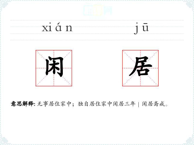 无事居住家中;独自居住家中闲居三年|闲居斋戒。