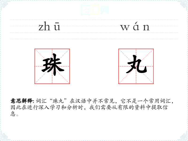 - 反义词:无明显反义词,因为“珠丸”不是一个常用词汇。
