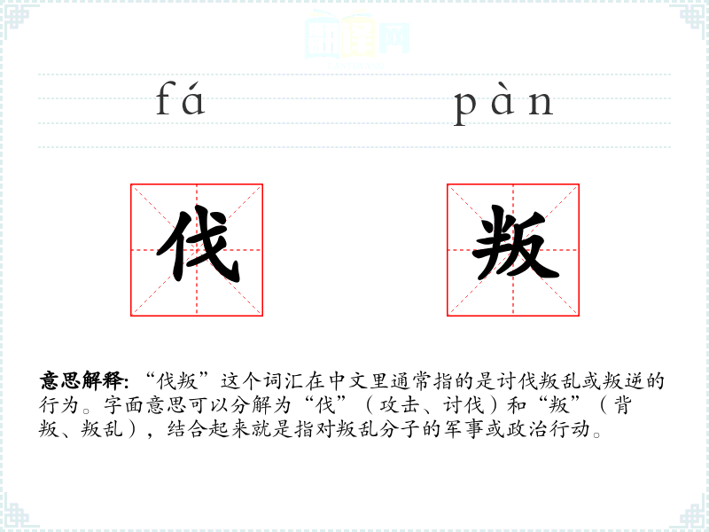 - 专业领域:在军事或历史学领域,“伐叛”是一个专业术语,用于描述对叛乱的军事行动。