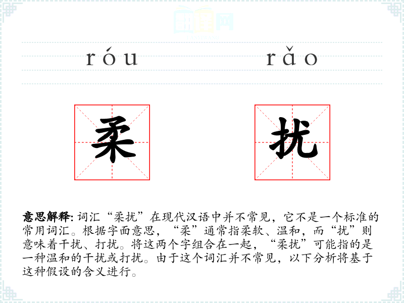 由于“柔扰”不是一个常用词汇,它在不同语言或文化中的对应词汇及其使用情况不详。