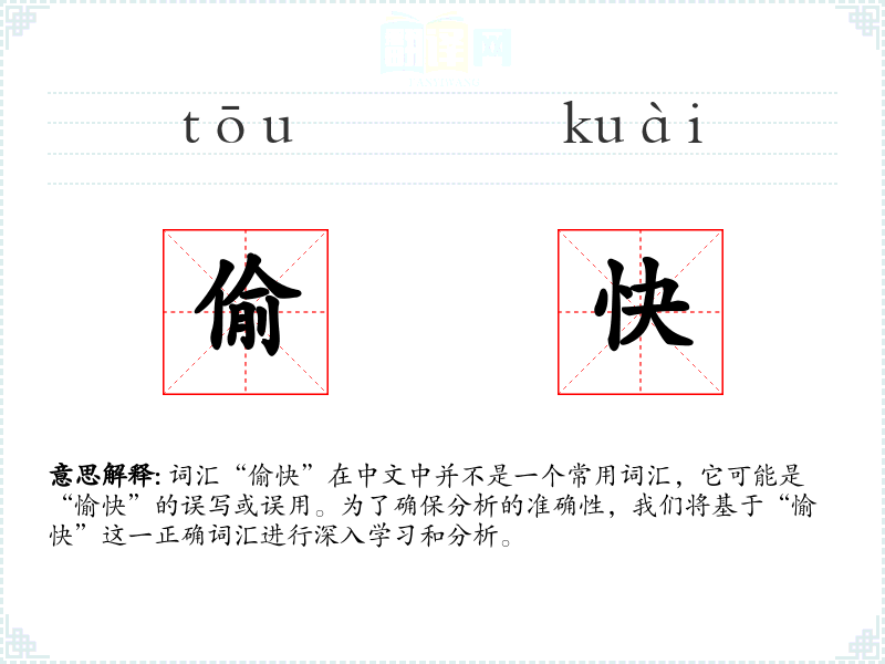 词汇“偷快”在中文中并不是一个常用词汇,它可能是“愉快”的误写或误用。为了确保分析的准确性,我们将基于“愉快”这一正确词汇进行深入学习和分析。