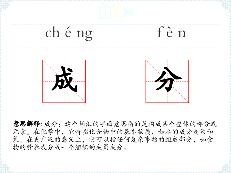 "成分"的意思解释、成分是什么意思由翻译网汉语词典查词提供。