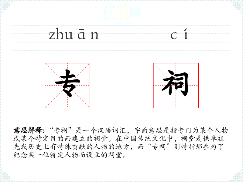 - 反义词:无,因为“专祠”是一个特定的文化概念,没有直接的反义词。