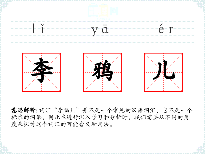 由于“李鸦儿”不是一个标准词汇,我们可以尝试从字面意思来解释:
