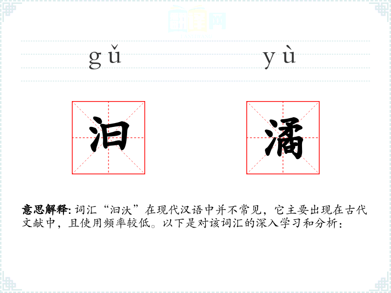 词汇“汩汏”在现代汉语中并不常见,它主要出现在古代文献中,且使用频率较低。以下是对该词汇的深入学习和分析: