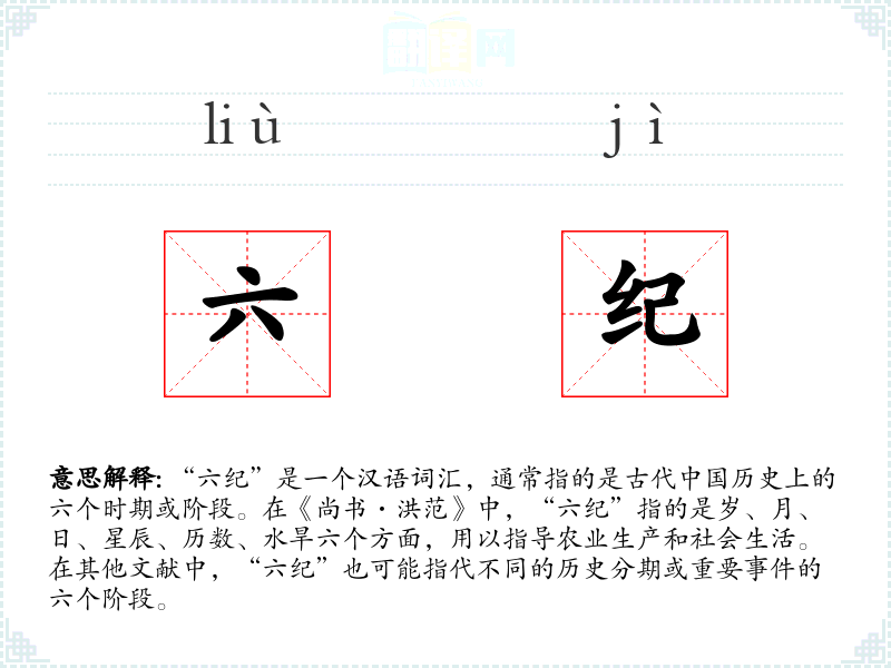 “六纪”这个词汇在*历史和文化中占有重要地位,它不仅帮助我们理解古代的天文和农业知识,也反映了古人对时间和社会发展的深刻认识。在学汉语和了解**文化的过程中,掌握这样的词汇对于深入理解其背后的文化内涵至关重要。