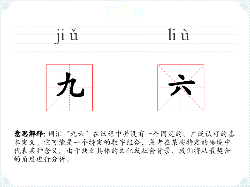 由于“九六”不是一个常用词汇,它在不同语境下的使用非常有限。可能在一些特定的领域或私人对话中,它被赋予了特殊的含义。