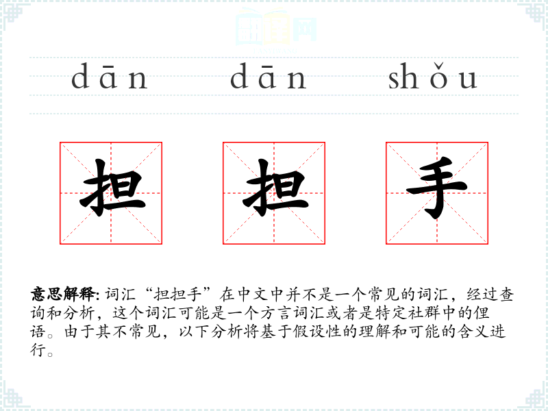 词汇“担担手”在中文中并不是一个常见的词汇,经过查询和分析,这个词汇可能是一个方言词汇或者是特定社群中的俚语。由于其不常见,以下分析将基于假设性的理解和可能的含义进行。