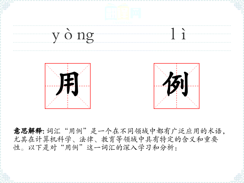 词汇“用例”是一个在不同领域中都有广泛应用的术语,尤其在计算机科学、法律、教育等领域中具有特定的含义和重要性。以下是对“用例”这一词汇的深入学习和分析:
