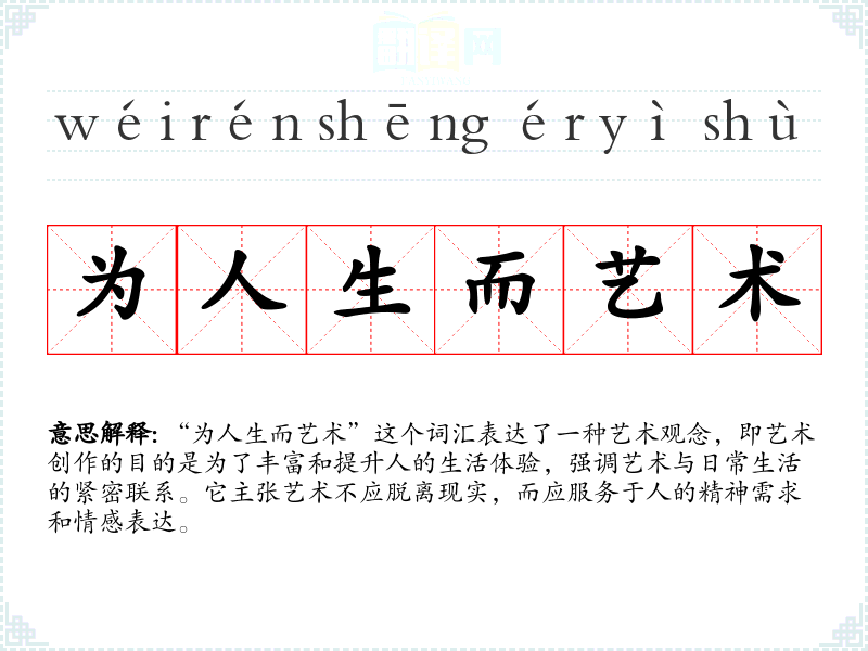 - 同义词:为生活而艺术、艺术服务于生活