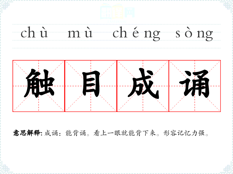 成诵:能背诵。看上一眼就能背下来。形容记忆力强。