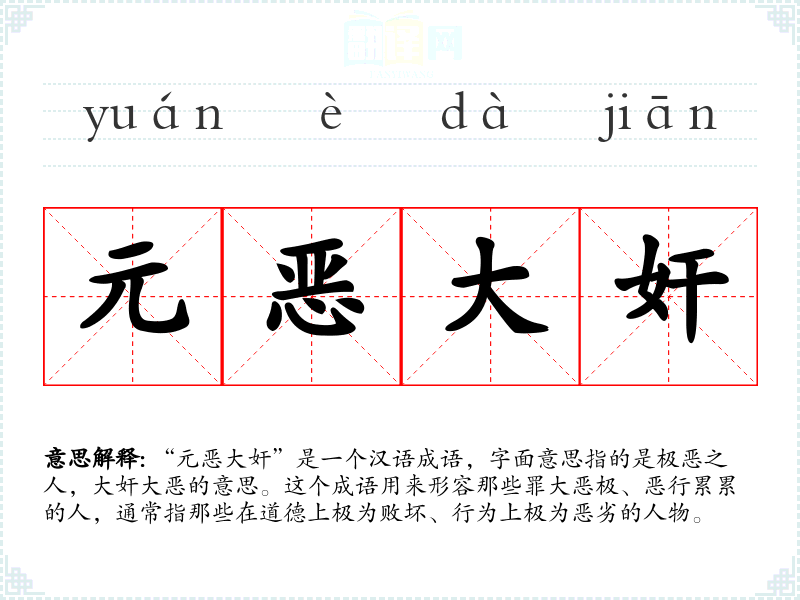 元恶大奸的分字解释