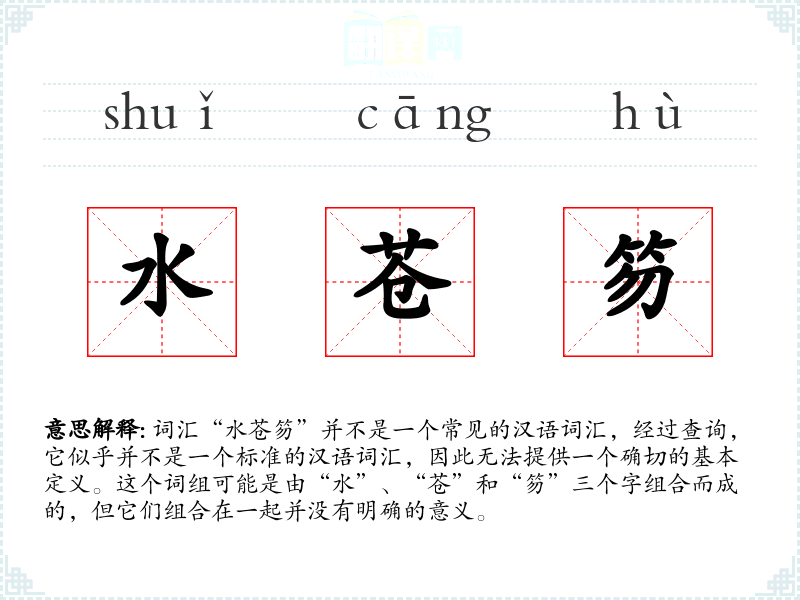总结来说,“水苍笏”不是一个标准的汉语词汇,因此无法进行深入的学*和分析。如果这个词组出现在特定的文学或文化作品中,了解其具体含义和使用场景将是理解的关键。