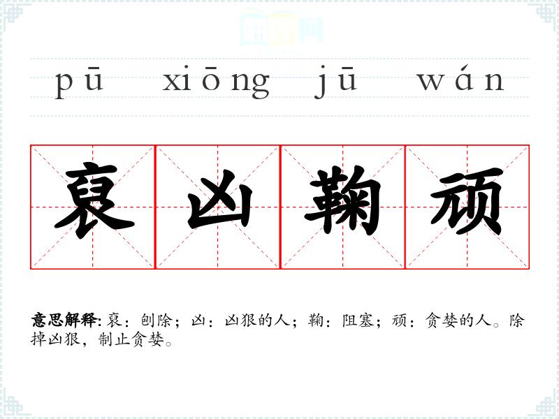 裒:刨除;凶:凶狠的人;鞠:阻塞;顽:贪婪的人。除掉凶狠,制止贪婪。