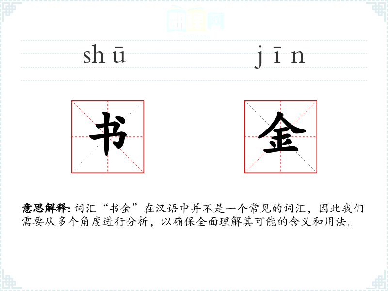 词汇“书金”在汉语中并不是一个常见的词汇,因此我们需要从多个角度进行分析,以确保全面理解其可能的含义和用法。