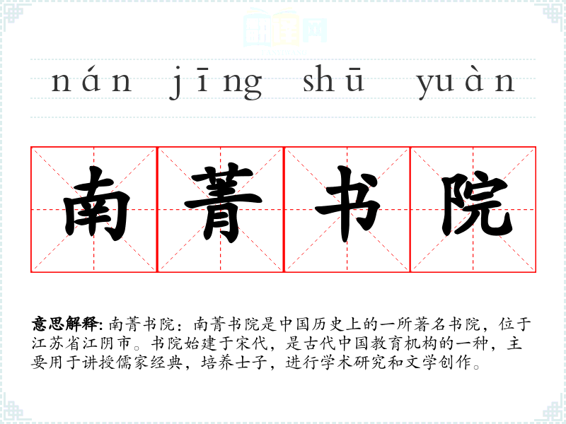 "南菁书院"的意思解释、南菁书院是什么意思由翻译网汉语词典查词提供。