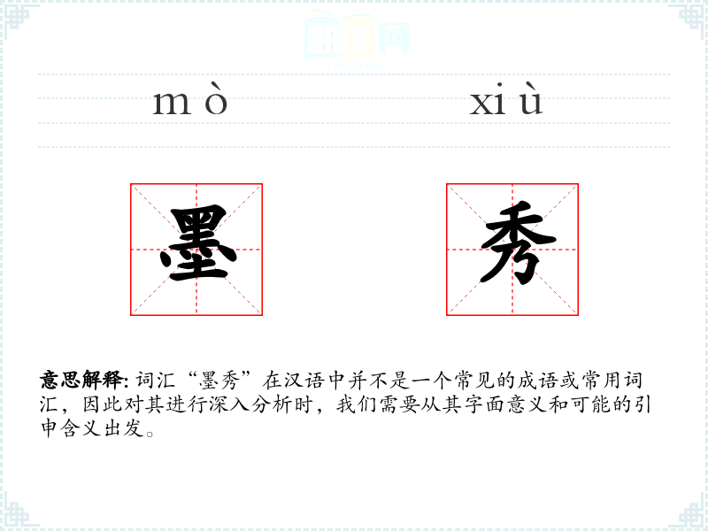 词汇“墨秀”在汉语中并不是一个常见的成语或常用词汇,因此对其进行深入分析时,我们需要从其字面意义和可能的引申含义出发。