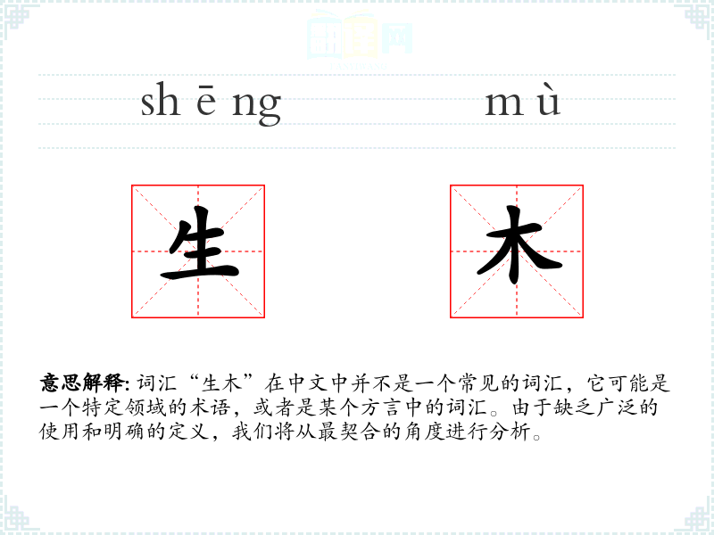 词汇“生木”在中文中并不是一个常见的词汇,它可能是一个特定领域的术语,或者是某个方言中的词汇。由于缺乏广泛的使用和明确的定义,我们将从最契合的角度进行分析。