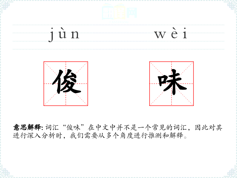 词汇“俊味”在中文中并不是一个常见的词汇,因此对其进行深入分析时,我们需要从多个角度进行推测和解释。