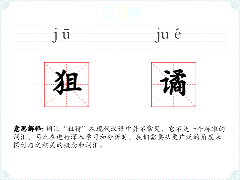 虽然“狙猾”不是一个标准词汇,但通过对与之相关的概念和词汇的分析,我们可以更好地理解狡猾和奸诈这一类行为的特征和影响。在语言学习和表达中,掌握这些词汇有助于更准确地描述和理解复杂的人际关系和社会现象。