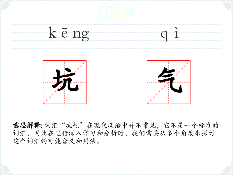 词汇“坑气”在现代汉语中并不常见,它不是一个标准的词汇,因此在进行深入学习和分析时,我们需要从多个角度来探讨这个词汇的可能含义和用法。