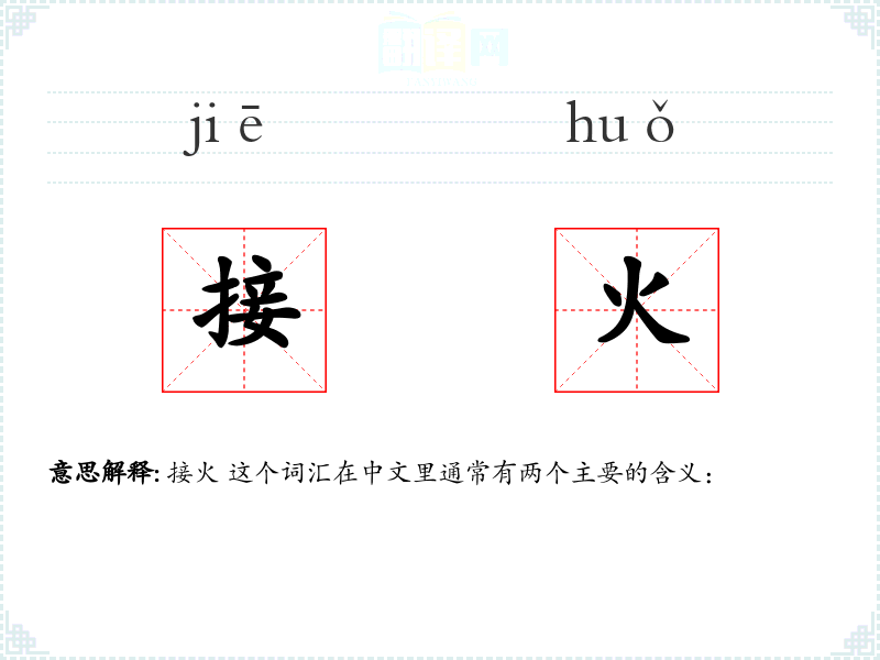 "接火"的意思解释、接火是什么意思由翻译网汉语词典查词提供。