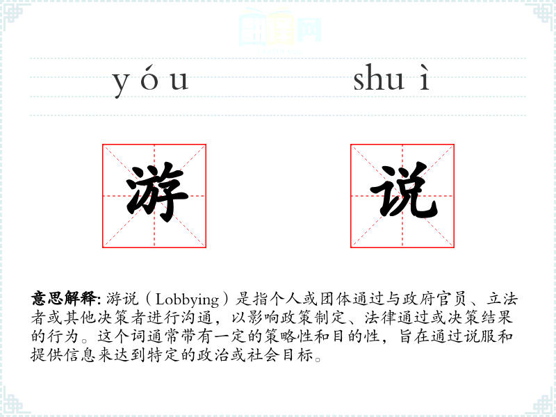 "游说"的意思解释、游说是什么意思由翻译网汉语词典查词提供。