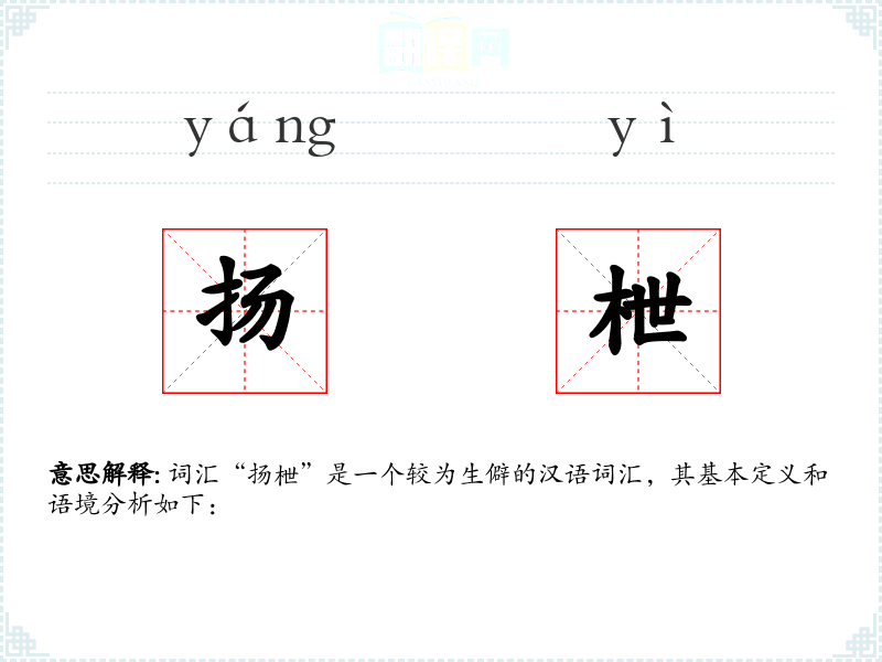 词汇“扬枻”是一个较为生僻的汉语词汇,其基本定义和语境分析如下: