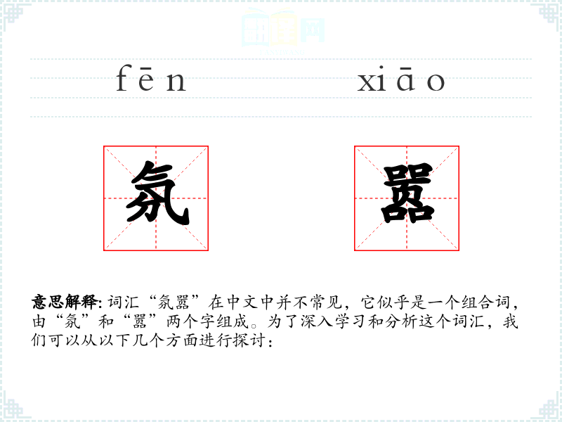 词汇“氛嚣”在中文中并不常见,它似乎是一个组合词,由“氛”和“嚣”两个字组成。为了深入学习和分析这个词汇,我们可以从以下几个方面进行探讨: