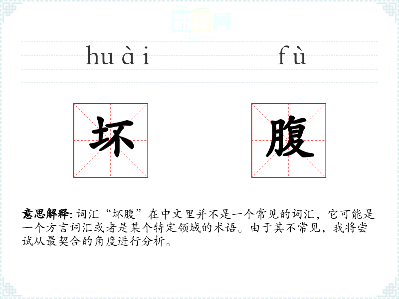 词汇“坏腹”在中文里并不是一个常见的词汇,它可能是一个方言词汇或者是某个特定领域的术语。由于其不常见,我将尝试从最契合的角度进行分析。