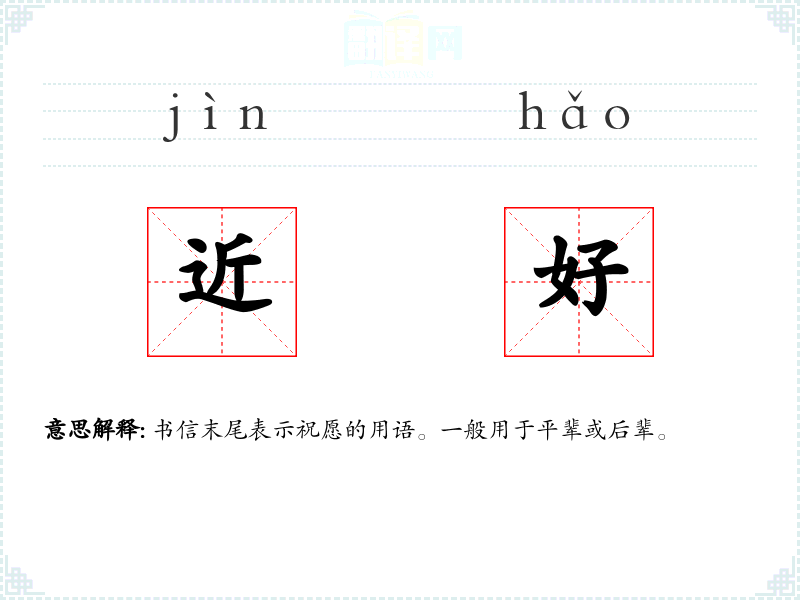 书信末尾表示祝愿的用语。一般用于平辈或后辈。