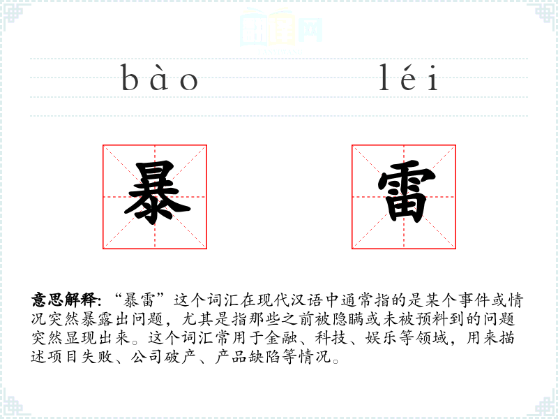 - 口语:在日常对话中,人们可能会用“暴雷”来形容某个计划或预期的事情突然出现问题,带有一定的惊讶和失望情绪。